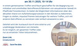 am 30.11.2025, 10-14 Uhr Bei dem gemeinsamen Treffen wird Raum geschaffen für die Begegnung von mittelbar und unmittelbar Betroffenen/Erfahrenen von sexualisierter Gewalt im Pfadfinder*innenkontext. Es bietet die Möglichkeit Informationen über den aktuellen Stand von Aufarbeitungsprozessen in den Bünden zu bekommen, Fragen zu stellen, Impulse/Themen beizutragen für weitere Treffen, sich mit…
